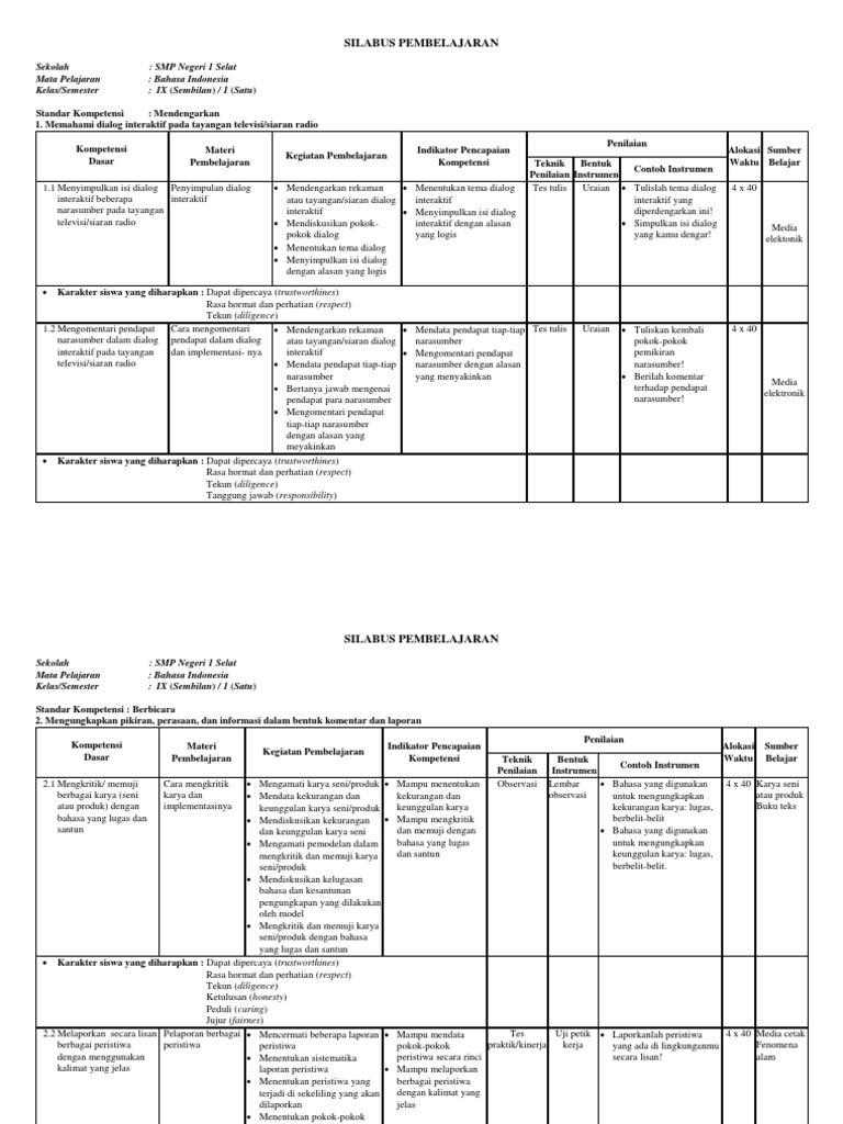 Silabus Bahasa Indonesia Smp Kelas 8 : Silabus Mata Pelajaran Bahasa Indonesia Smp Mts Kls 8 1 Th 2021 2022 / Setiap bab dalam buku ini dikembangkan dengan mengacu kepada konsep teoretis yang mendasari kurikulum 2013, yaitu pembelajaran berbasis genre dan clil (content language integrated learning).. Dan soal online kali ini dapat digunakan untuk kelas 7 maupun kelas 8 smp/mts. Jadi saya berharap bagi bapak/ibu guru di harapkan dapat selalu di revisi sesuai dengan acuan revisi kurikulum 2013 yang berlaku sehingga dapat sesuai dengan harapan pendidikan saat ini. Setiap bab dalam buku ini dikembangkan dengan mengacu kepada konsep teoretis yang mendasari kurikulum 2013, yaitu pembelajaran berbasis genre dan clil (content language integrated learning). Downloar rpp bahasa indonesia isi pokok laporan hasil observasi. Mar 13, 2021 · soal pat bahasa indonesia k13 kelas 7 ini terdiri dari 40 dalam bentuk soal pilihan ganda dan 5 soal uraian.